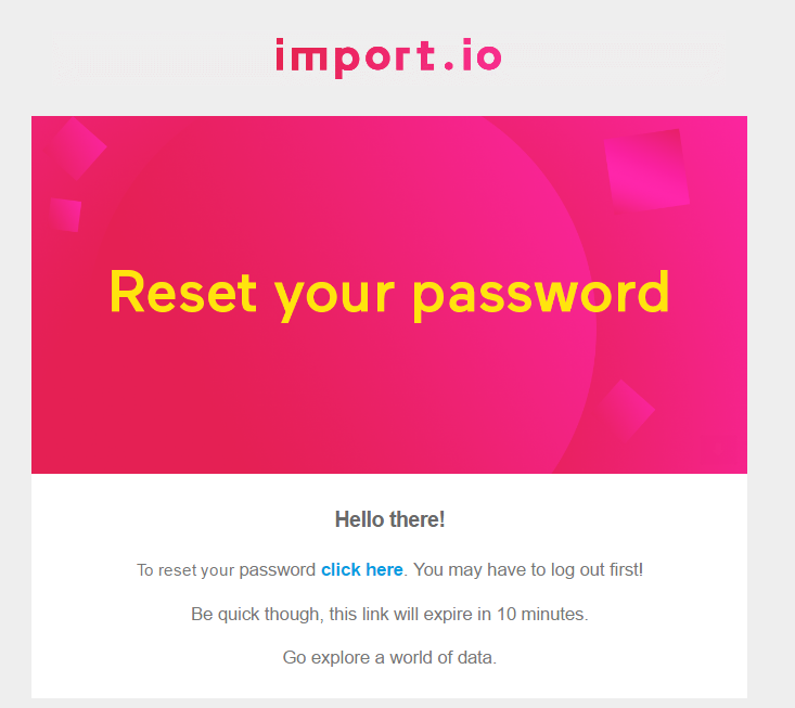 Your can also delete your account at the link at the bottom of this page. Please note if this is used Import.io will not be able to retrieve your extractors or old data as they will be removed.